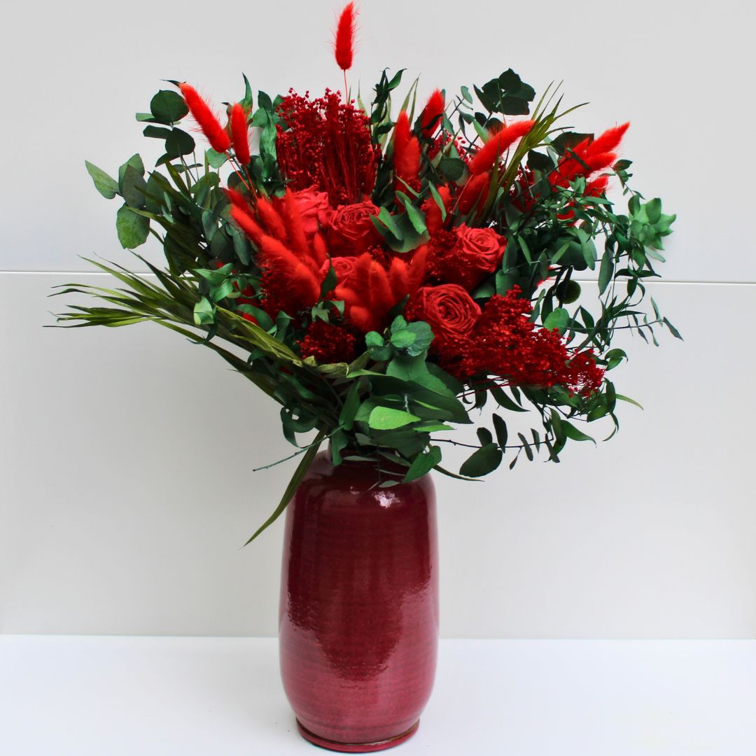 Le Bouquet Éternel Rue de la Pompe s’intègre parfaitement à différents styles d’intérieurs. Pour une ambiance bohème, placez-le dans un vase en céramique texturée sur un meuble en bois brut, accompagné de bougies et d’éléments en lin. Pour un style moderne et épuré, optez pour un vase minimaliste aux tons neutres, sur une table en marbre ou une étagère design. Enfin, pour une déco cosy et élégante, disposez-le sur une table basse ou une coiffeuse, avec des touches de laiton et de lumière tamisée. Associez-le à des nuances neutres ou des touches de jaune pour sublimer ses craspedias et créer une belle harmonie visuelle.