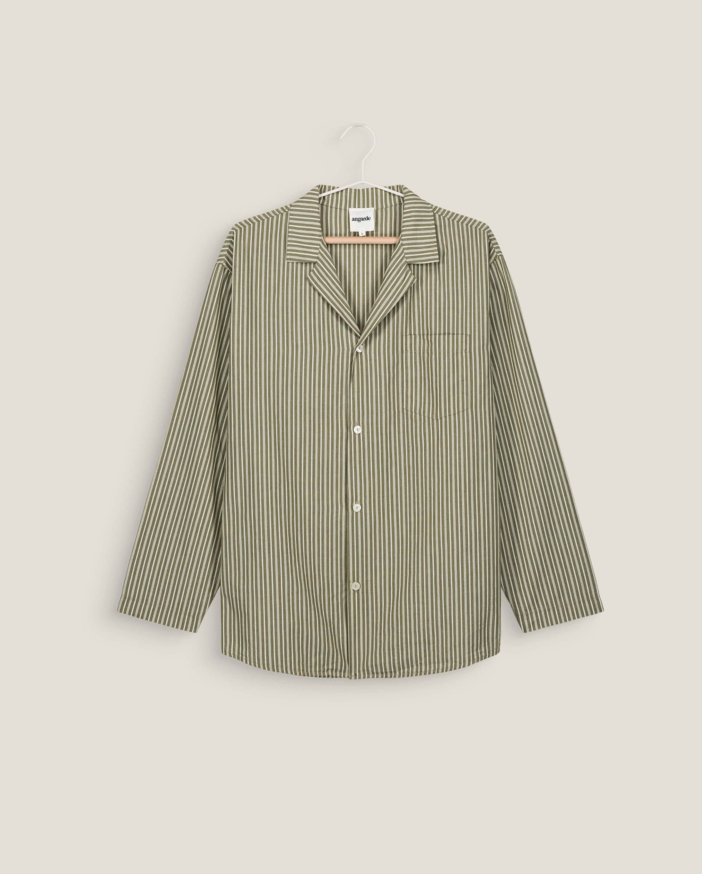 Chemise à manches longues en coton bio à multi-rayures kaki pour homme