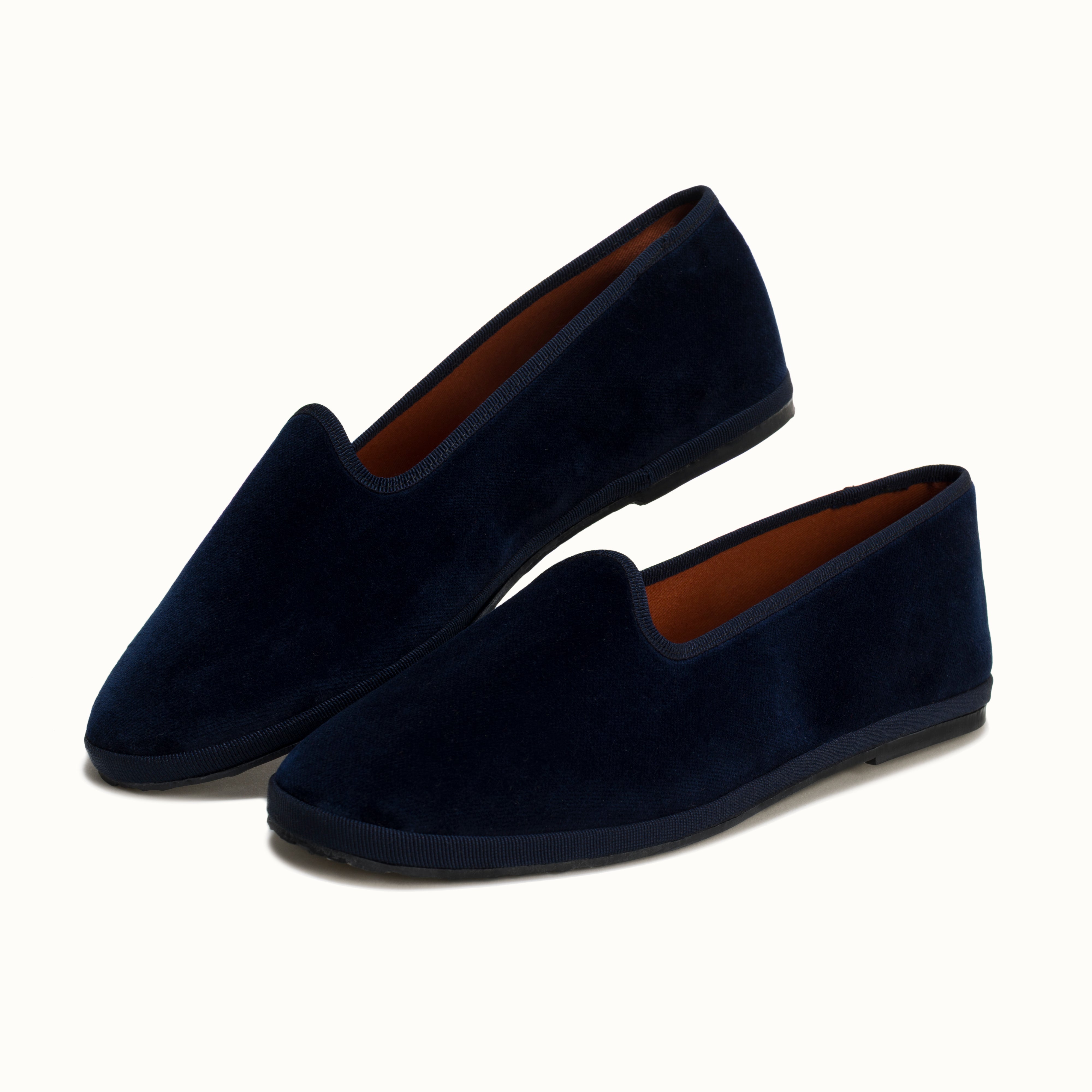 Friulane en velours bleu marine et rebords en gros grain bleu marine.