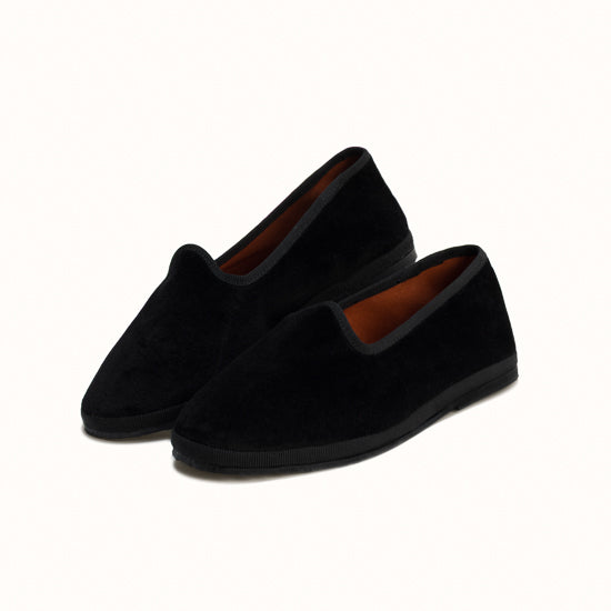 Friulane en velours noir et rebords en gros grain ton sur ton.