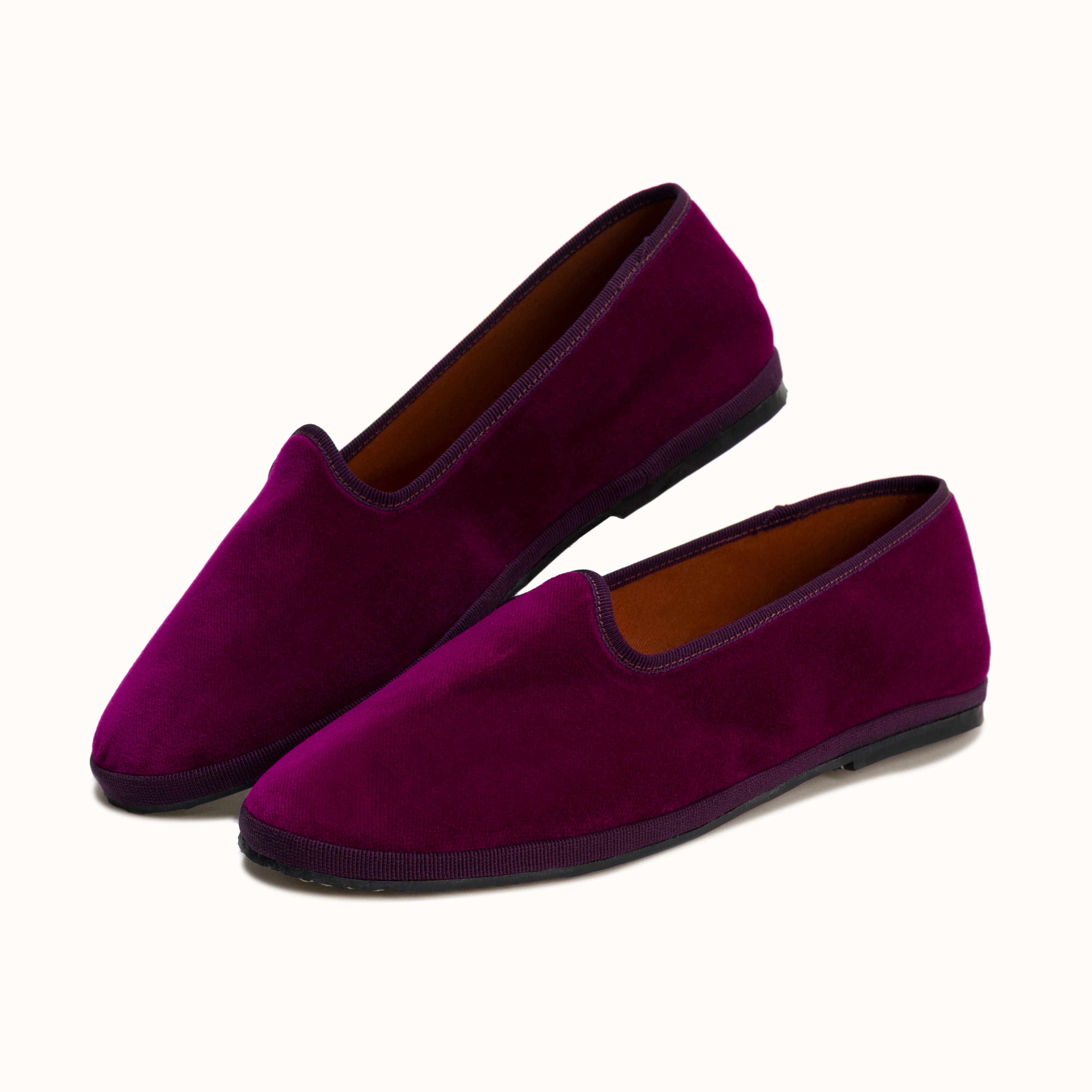 Friulane en velours violine et rebords en gros grain violet.